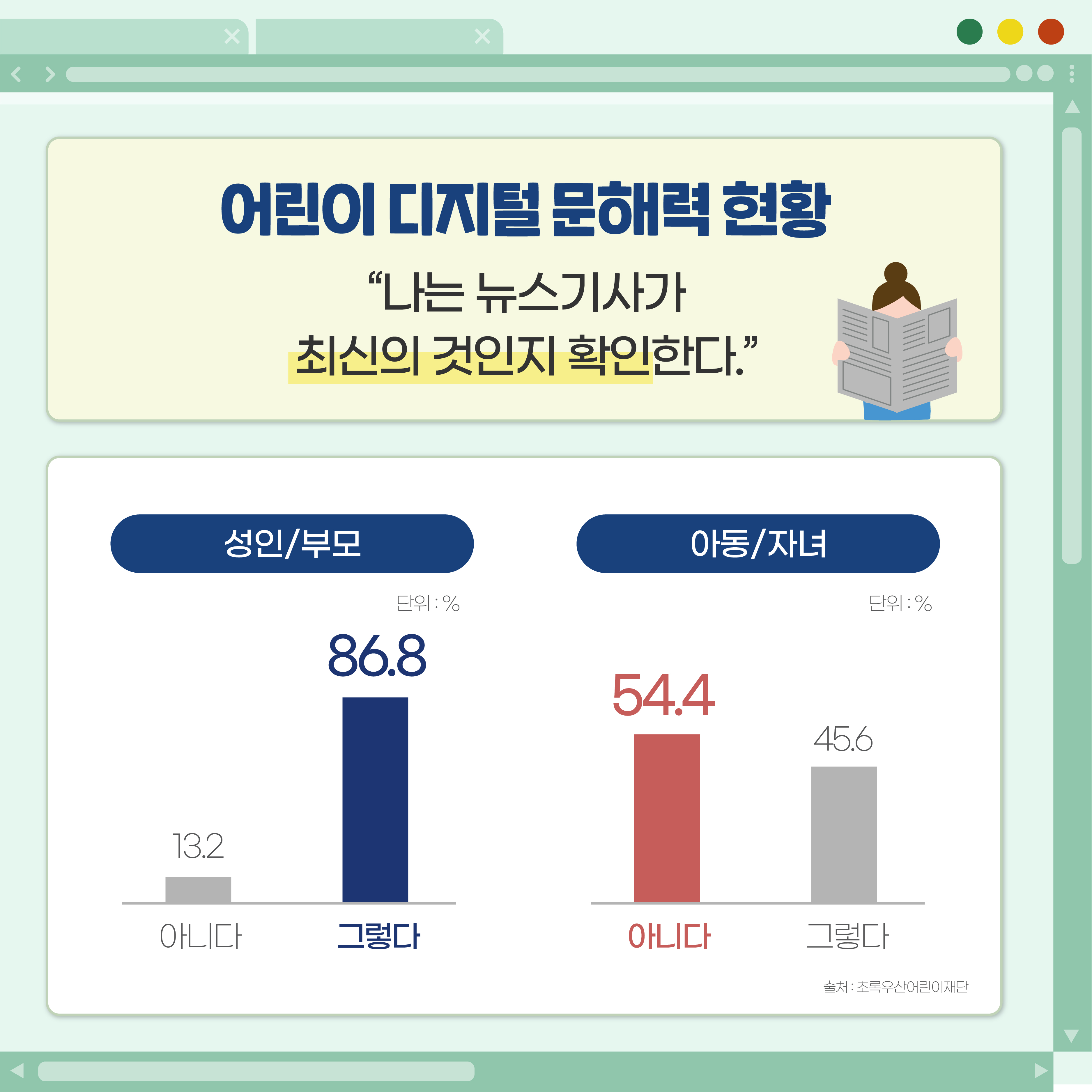 부모 세대와 비교했을 때 어린이의 디지털 문해력 현황을 통해 알아봐요!