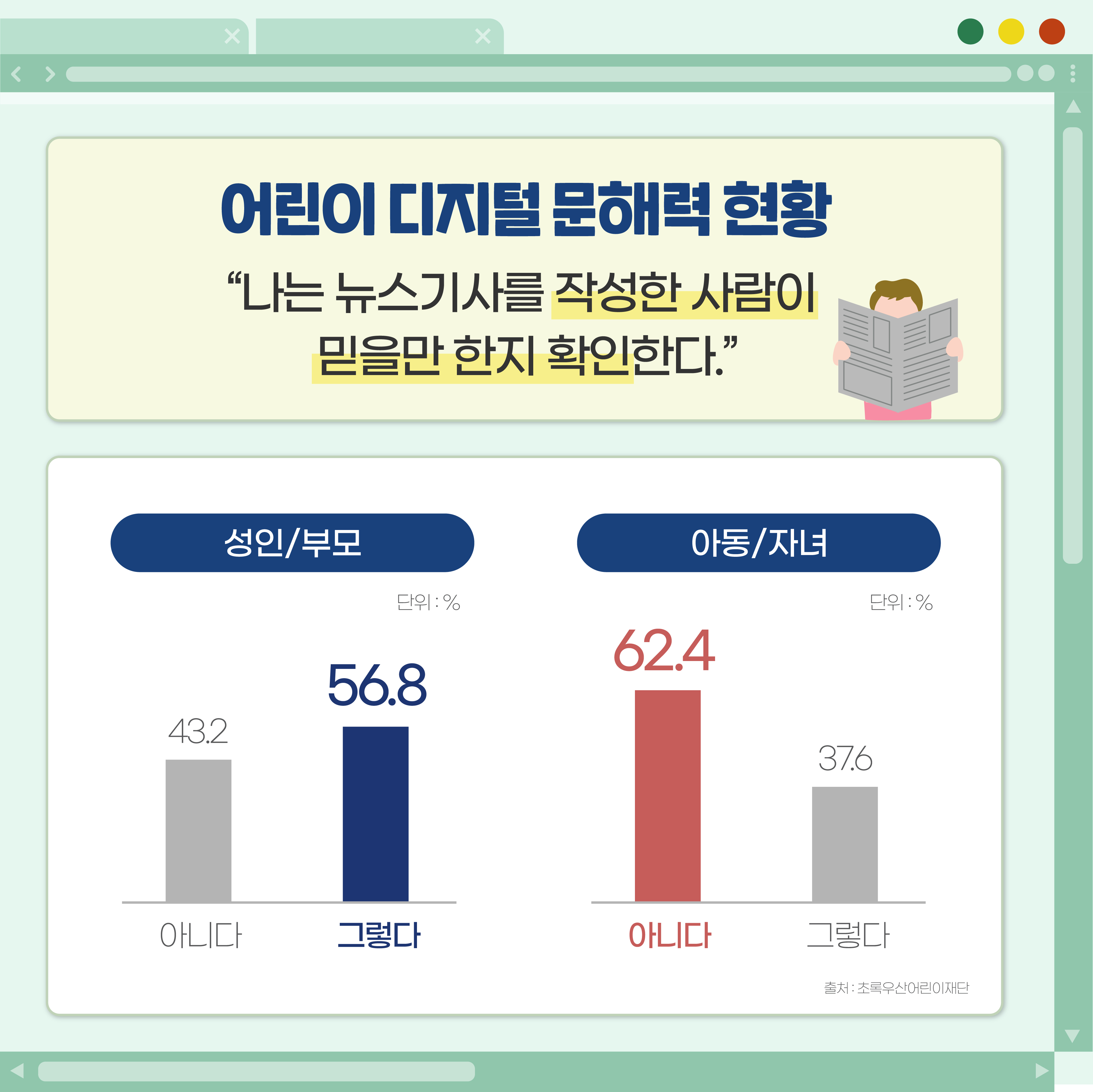 부모 세대와 비교했을 때 어린이의 디지털 문해력 현황을 통해 알아봐요!