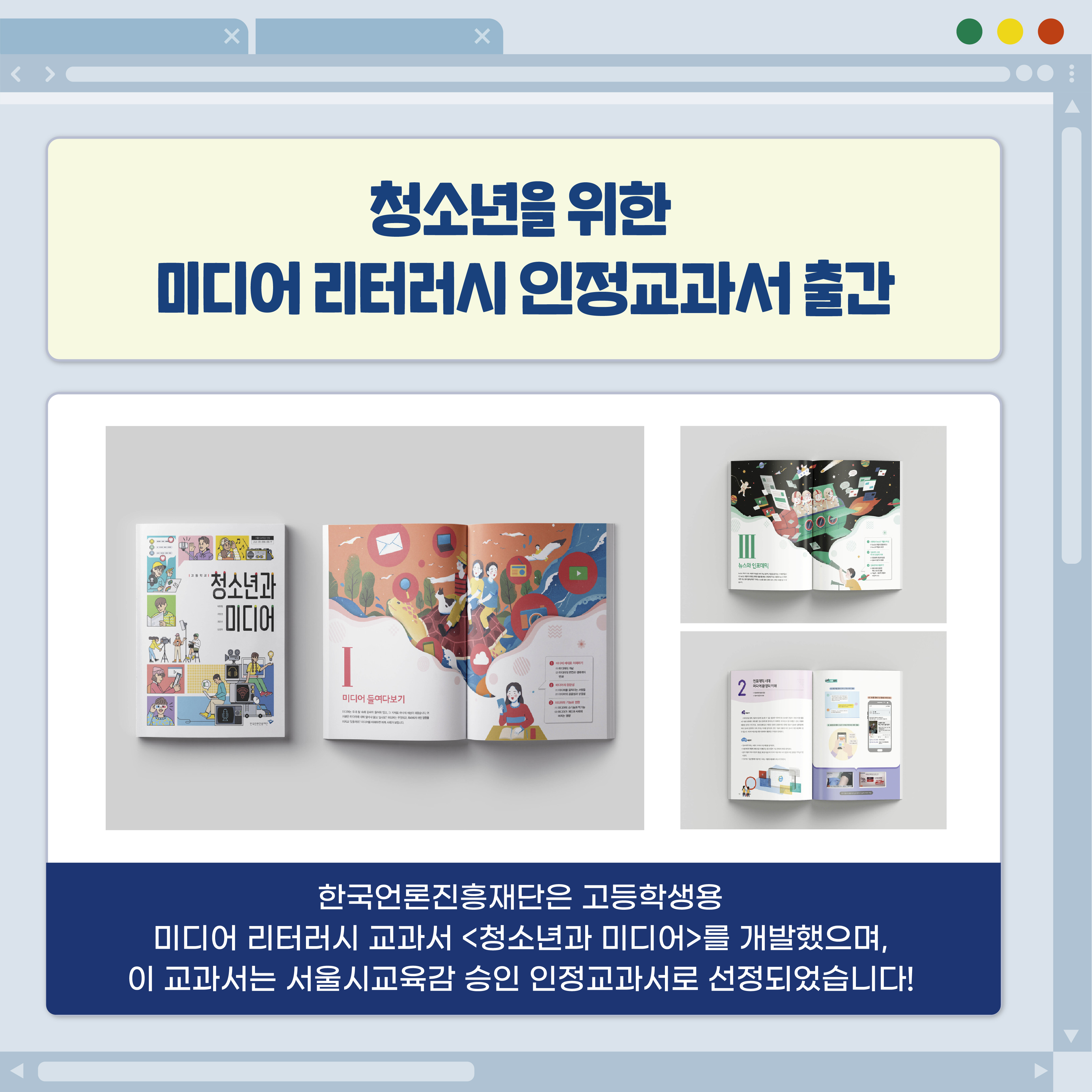 한국언론진흥재단은 고등학생용 교과서 <청소년과 미디어>를 개발했어요!