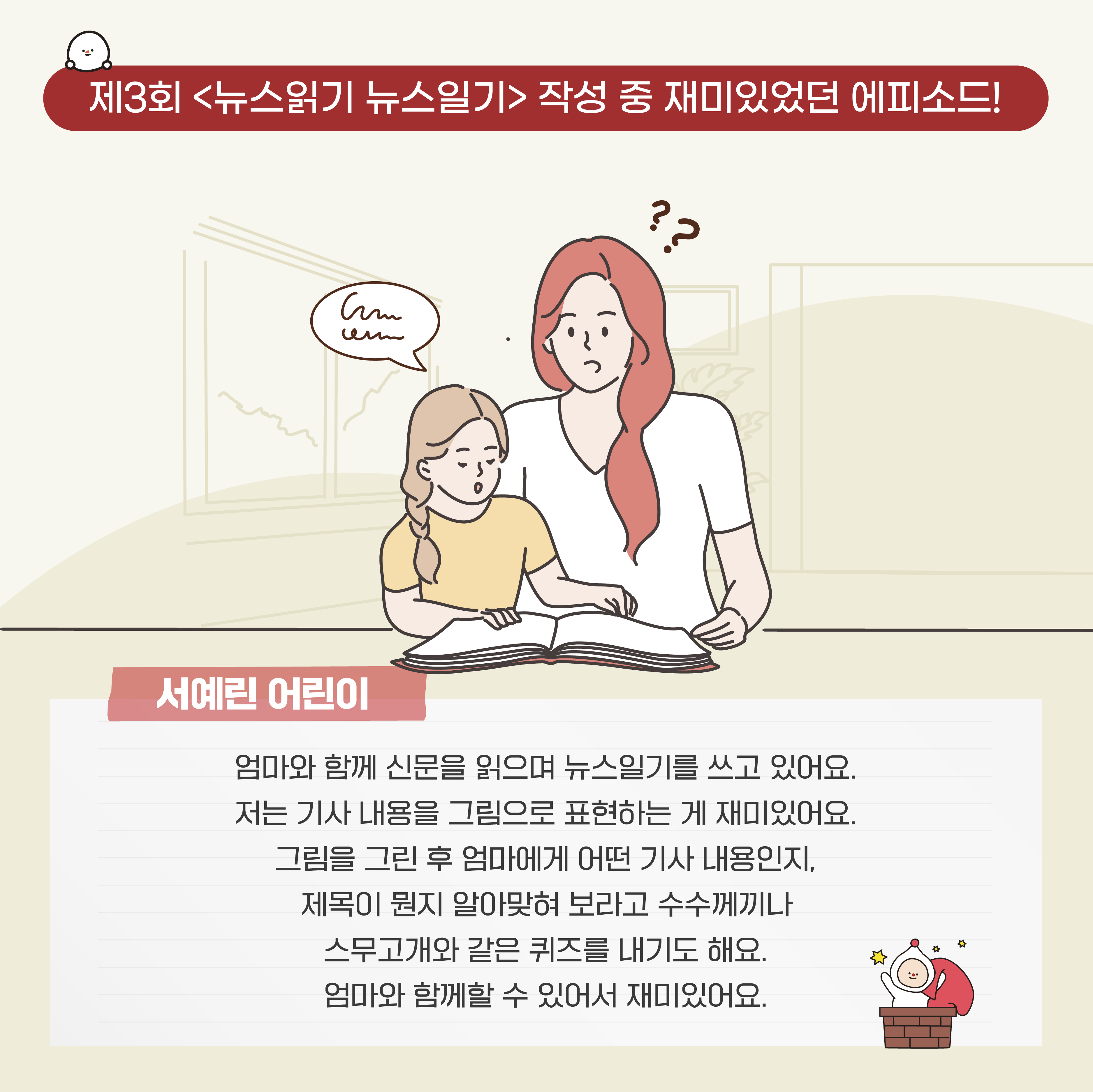 서예린 어린이는 어머니와 함께 뉴스일기를 작성하고 있어요!