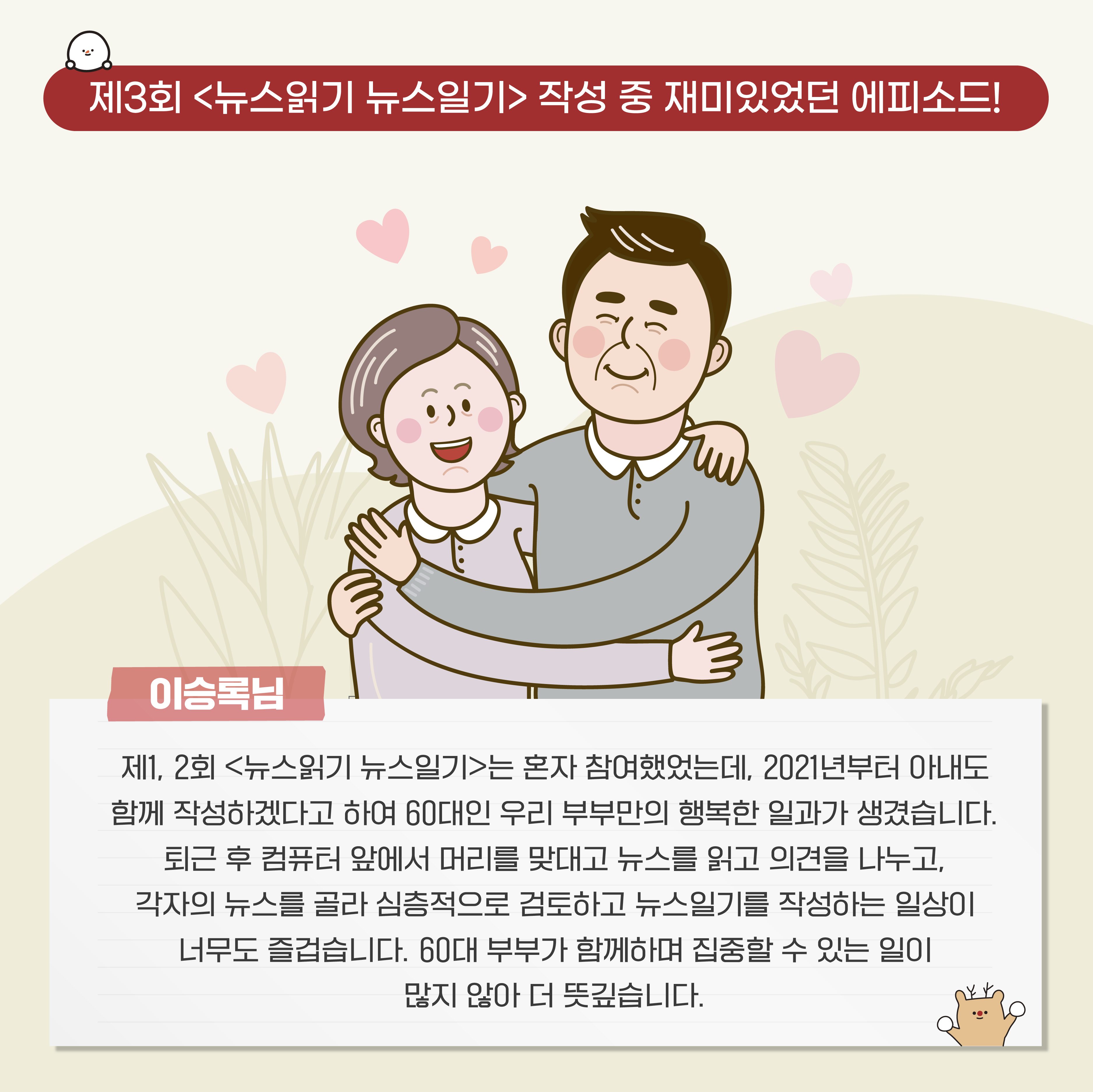 | 참가자가 직접 말하는 뉴스일기 작성 후 변화된 점은? (0) | 2021.12.31 |
