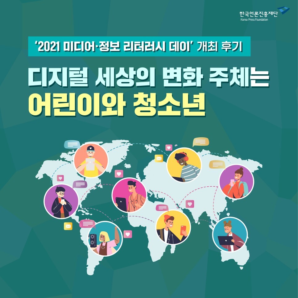 2021년 오늘을 살아가는 우리 어린이·청소년은 나이와 상관없이 방송, 인터넷, 소셜 미디어 등 다양한 형태의 미디어에 대한 지식 없이는 교육, 건강, 노동, 여가 등 모든 측면에서 현대 사회의 혜택을 충분히 누릴 수 없습니다.