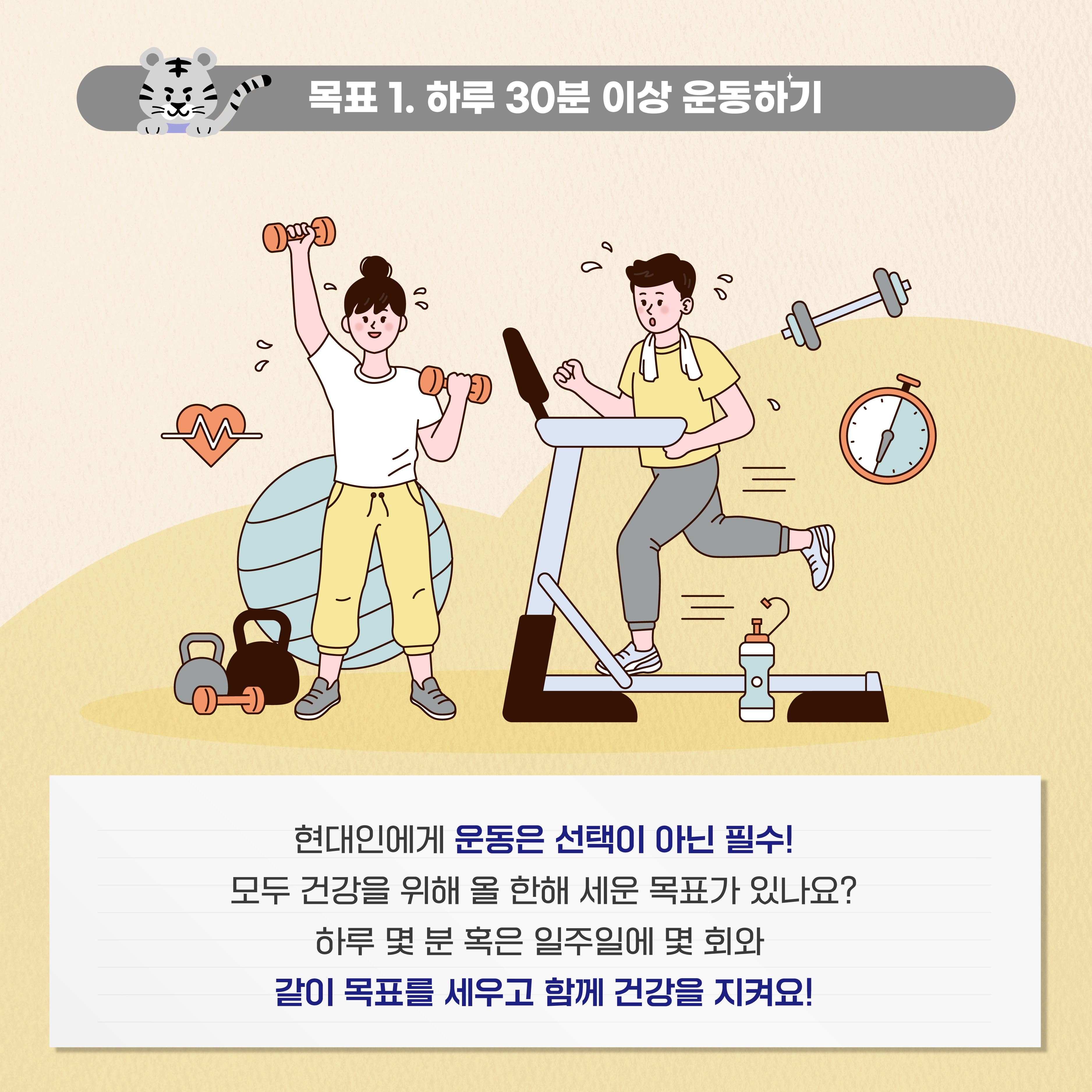 첫 번째 목표는 “하루 30분 이상 운동하기”입니다.