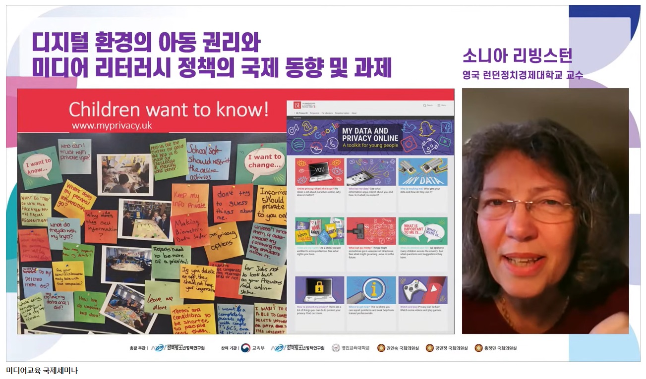 리빙스턴 교수는 유럽연합 키즈 온라인(EU Kids Online) 연구 네트워크 디렉터이자 유니세프와 런던정경대가 함께하는 글로벌 키즈 온라인(Global Kids Online) 프로젝트 및 유엔 아동권리위원회 일반 논평 제25호 ‘디지털 환경에서의 아동 권리’에도 주도적으로 참여한 석학이다. 리빙스턴 교수의 강연 및 특별 대담에서 논의된 주요 내용을 키워드 중심으로 정리했다.