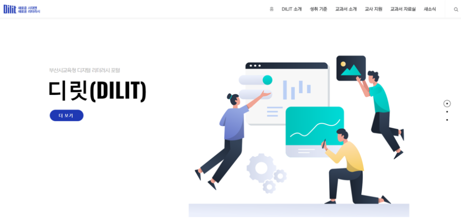교육과정과 연계한 디지털 리터러시 교육은 부산시교육청에서 개설한 디지털 리터러시 교과의 안정적 현장 정착과 함께, 모든 교과에서 디지털 리터러시 교육이 이루어질 수 있도록 지원하는 내용을 포함하고 있다. 이를 위해 부산시교육청에서는 디지털 리터러시 교육 지원 시스템(http://www.dilit.kr)을 개발하여 현재 운영 중에 있는데, 이 시스텝은 학교에서 필요한 디지털 리터러시 교육의 모든 것을 담아서 교실 수업을 지원하는 역할을 수행할 것이다.
