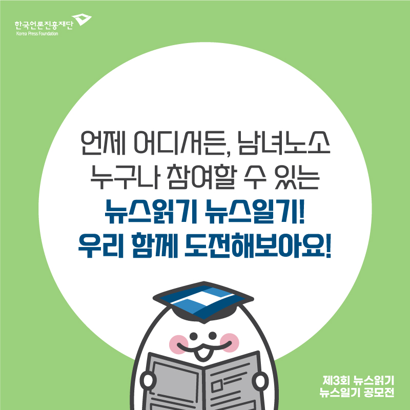 <제3회 뉴스읽기 뉴스일기> 공모전은 한국언론진흥재단 정부광고 수수료로 조성된 언론진흥기금의 지원을 받아 진행됩니다.