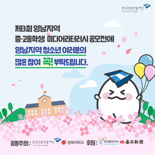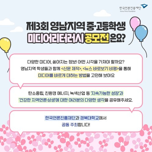 제3회 영남지역 중·고등학생 미디어리터러시 공모전을 주최합니다.