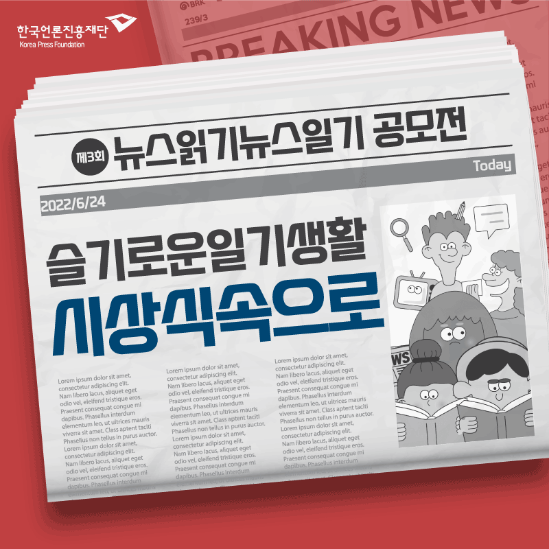 <제3회 뉴스읽기 뉴스일기> 공모전은 한국언론진흥재단 정부광고 수수료로 조성된 언론진흥기금의 지원을 받아 진행됩니다.