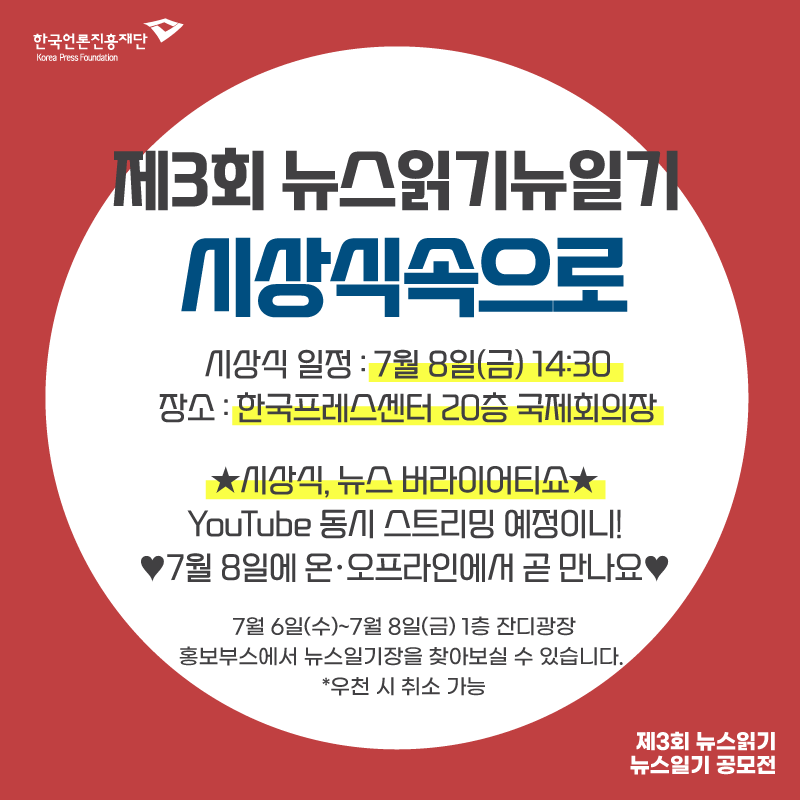 <제3회 뉴스읽기 뉴스일기> 시상식일정 공.개.!