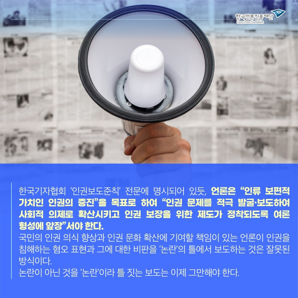 한국기자협회 ‘인권보도준칙’ 전문에 명시되어 있듯,