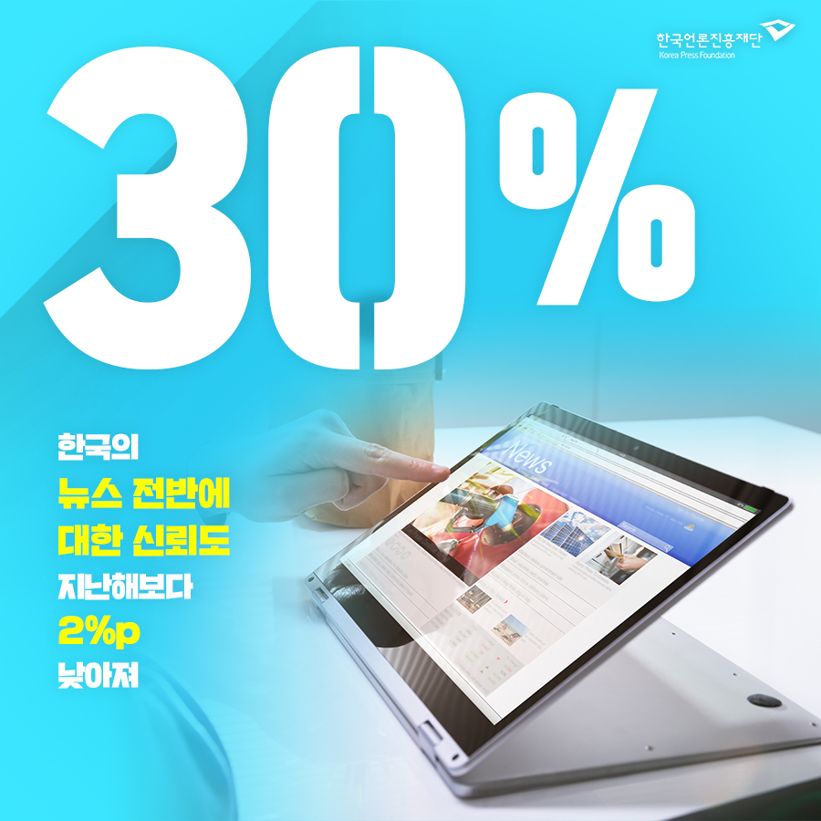 한국의 뉴스 전반에 대한 신뢰는 30%로