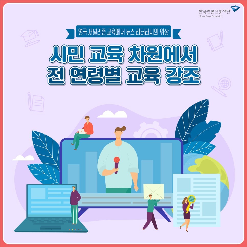 국내에서도 미디어교육에 대한 종합 계획(2020.10)에서 리터러시 교육 계획을 발표하며 허위정보에 대한 대응 능력을 함양시키기 위한 의지를 드러낸 바 있다. 앞서 영국의 사례에서 살펴본 것처럼 뉴스 리터러시는 기술 발달로 수많은 정보가 범람하는 환경에서 전문적 교육이 아닌, 전 국민을 대상으로 한 일반적 교육으로서 더욱 중요해질 수 있다. 주체적 시민으로서 활동하고, 더 나은 사회 공동체를 구성하기 위해서는 뉴스 리터러시에 대한 보다 포괄적인 접근이 필요하다.