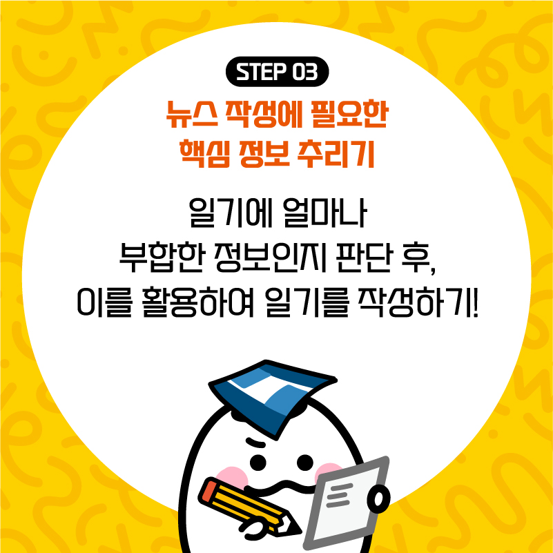 오늘 카드뉴스만 보면 일기 작성 시 필요한 정보를 똑똑하게 찾을 수 있다구~!