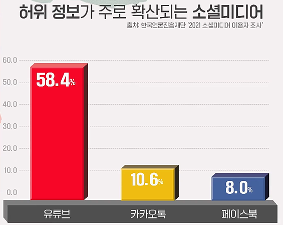 위 사진은 실제 뉴스 방송 화면처럼 보이지만 코미디를 소재로 하는 한 유튜브 채널의 영상이다. 해당 영상에는 기자로 분한 유튜버가 뉴스를 전하며 물에 빠지는 장면이 나오는데, 뉴스와 똑같은 카메라 구도와 자막을 사용한 영상이다 보니 방송 사고라는 착각을 불러일으킨다. 웃음을 전해주는 유튜브 채널이라는 사실을 모른다면 자칫 오해할 수도 있다(실제로 방송 사고 모음 영상에 이 영상이 삽입되어 있기도 하다). 사람들은 재미있는 영상을 보면 출처를 확인하지 않고 다른 사람과 빠르게 공유하기 때문에 이와 같은 영상은 전파 속도가 매우 빠르다. 영상을 시청할 때 출처를 점검하고, 정보를 확인하는 습관이 중요하다.