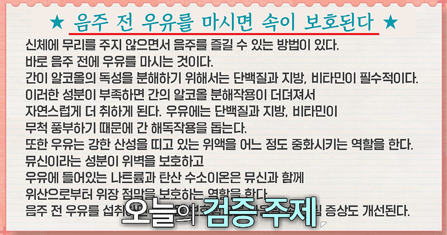 참가자들에게 ‘음주 전에 우유를 마시면 속이 보호된다’라는 주제의 진위 여부를 검증하는 미션이 주어졌다. 참가자들은 해당 주제를 검색하기 전에 먼저 주제에 대한 자신의 의견을 밝혔다. 그 뒤 포털 지식 검색의 답변, 블로그의 글, 동영상 플랫폼에서 정보를 검색했다. 다양한 방법으로 검증한 결과 6명 중에서 1명만 제대로 된 정보를 찾았다. 대부분의 참가자는 많은 사람이 이용하는 사이트에 올라온 내용은 옳다고 생각하며, 검색 결과 중에서 가장 맨 앞에 나오고 조회 수가 높은 글을 신뢰하는 경향을 보여 주었다. 주체적으로 판단하고 평가하는 대신 검색 결과를 단순하게 믿는 모습을 보였다(한 참가자는 검색 내용을 자세히 읽어 보지 않고 검색 미리보기, 즉 제목과 내용 한두 줄만 확인하기도 했다. 또 다른 참가자는 우유 섭취를 권장하는 단체의 블로그 글을 보고 판단을 내렸다).