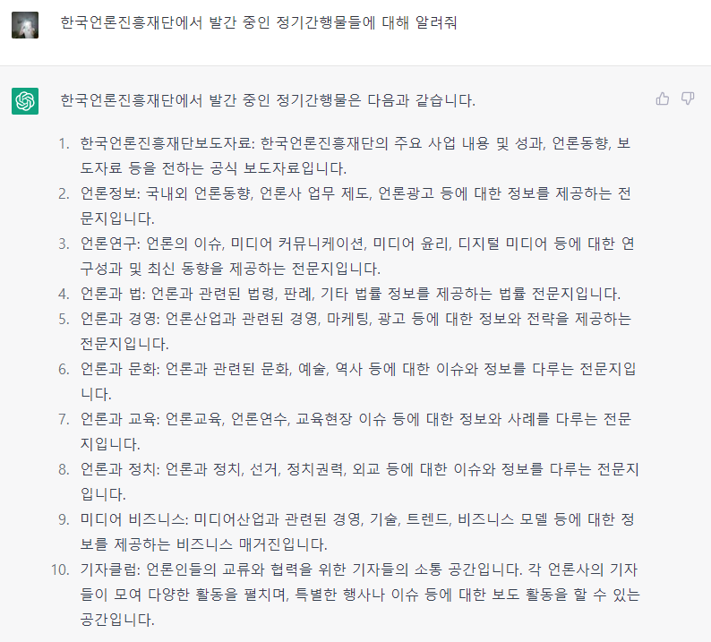 사실과는 무관하게, ‘한국언론진흥재단’이라는 단어에서 확률·통계적으로 가장 적절한 단어를 취합해 답변을 내놓은 것입니다.