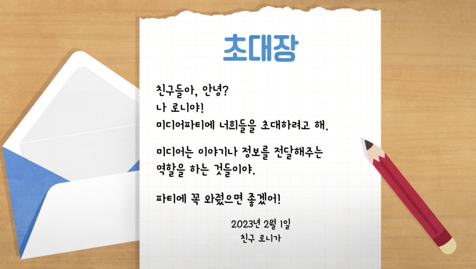 3. 본 차시는 1차시 활동으로 미디어의 기기적 측면에 대해 많이 다루었지만 콘텐츠, 플랫폼 등도 미디어가 될 수 있음을 알고 이후에는 더 다양한 미디어의 개념에 대해 이해할 수 있도록 다시 한 번 이야기를 나누어 볼 수 있다.
