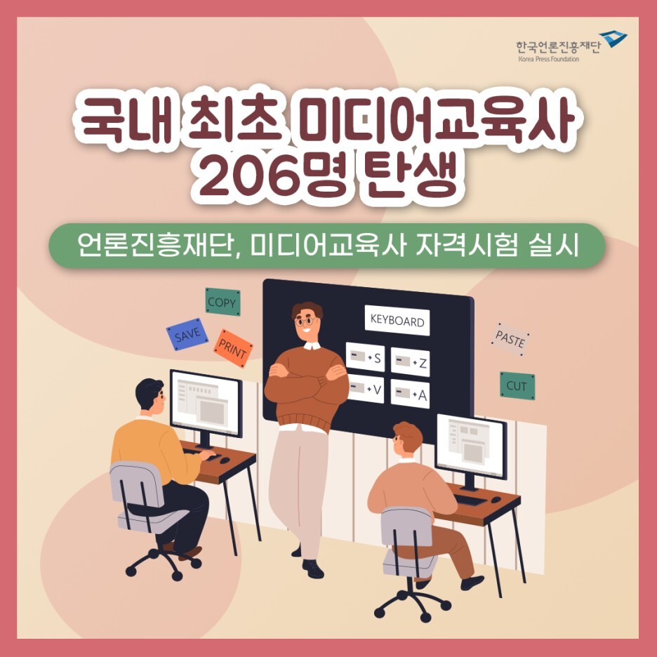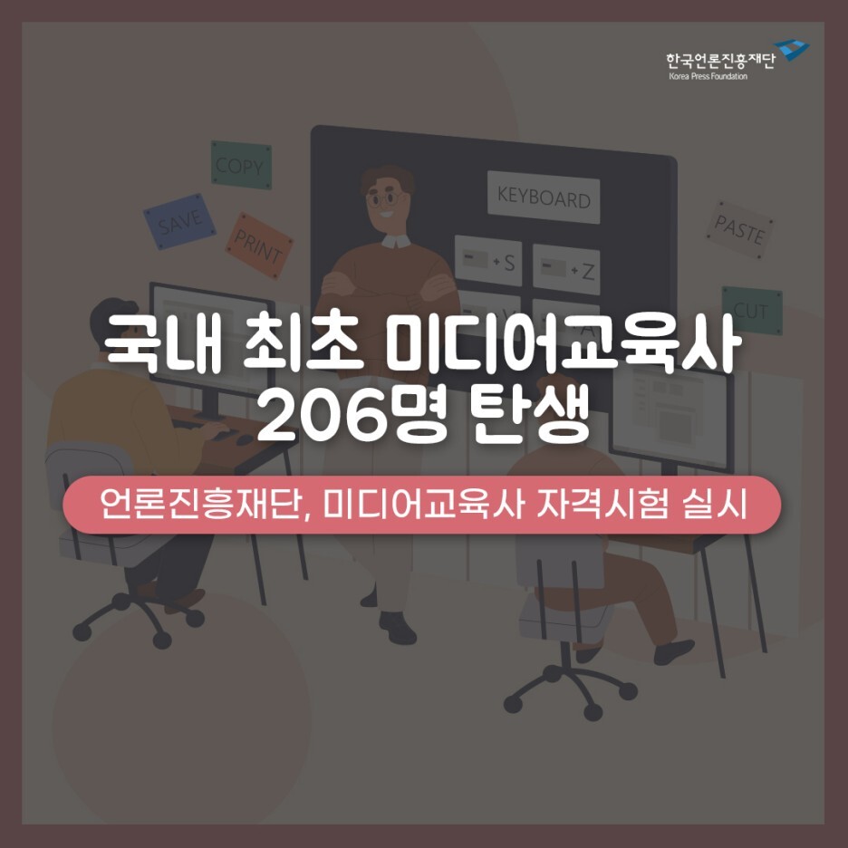 한국언론진흥재단은 지난해 11월 20일 제1회 미디어교육사 자격시험을 실시했다. 자격 제도가 도입되고 처음 치러진 시험에 271명이 응시해 217명이 필기·실기 시험에 합격했다. 이들 중 총 12시간의 직무 교육을 이수한 206명이 최종 합격해 미디어교육사 2급 자격증을 받았다.