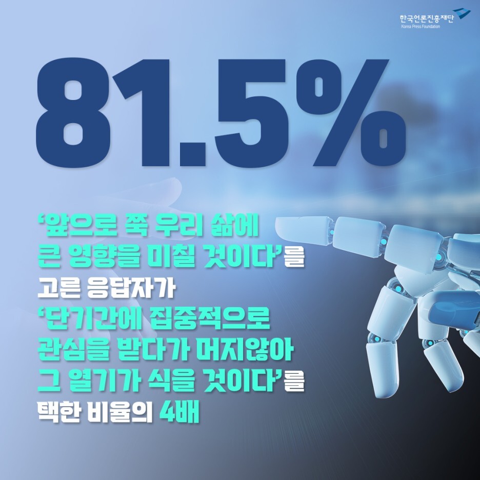 앞으로 쭉 우리 삶에 큰 영향을 미칠 것이다’(81.5%)를 고른 응답자가