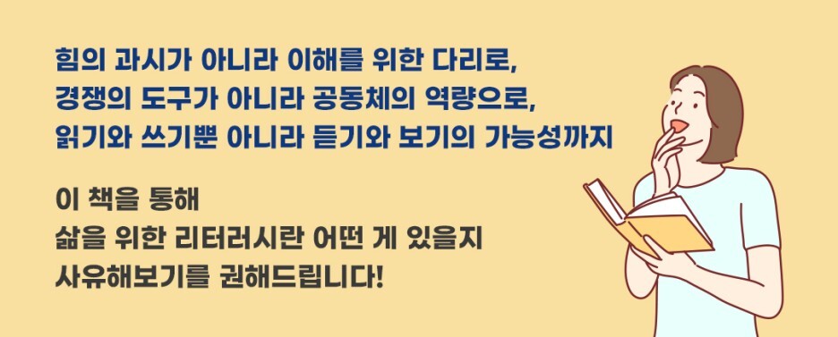 저자가 리터러시를 삶에 대한 이해력, 그리고 타인과 소통하는 능력으로 보고 있다는 것이 한눈에 느껴졌습니다.