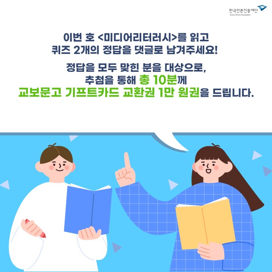 이번 호 <미디어리터러시>를 읽고 퀴즈 2개의 정답을 댓글로 남겨주세요!