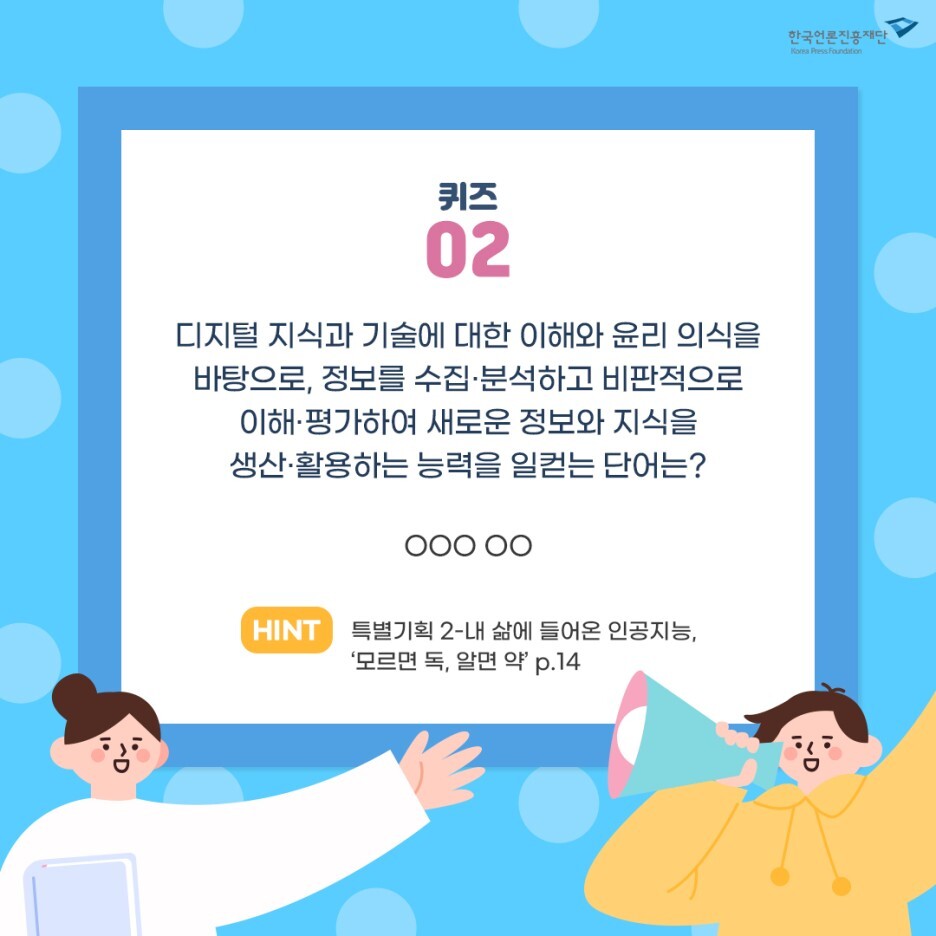 이번 호 <미디어리터러시>를 읽고 퀴즈 2개의 정답을 댓글로 남겨주세요!