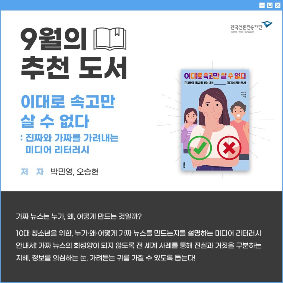 허위조작정보 속에서 살고 있는 청소년 여러분과 학부모님들에게 추천합니다.