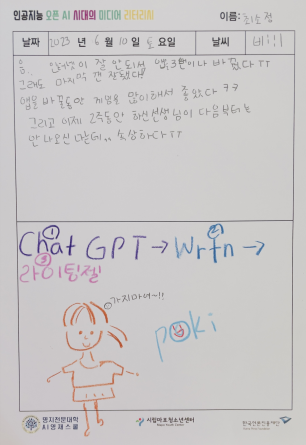 이와 같은 배경에서 명지전문대 평생교육원은 한국언론진흥재단이 지원하는 <2023년 대학·지역사회 연계 미디어 리터리시 사업>에 선정되어 ‘인공지능 오픈AI 시대의 미디어 리터러시’ 프로그램을 운영했다. 본 프로그램은 초등학교 5~6학년생을 대상으로, 1기(2023.6.3.~7.15.), 2기(2023.7.31.~8.8.)에 걸쳐 시립마포청소년센터에서 진행됐다.