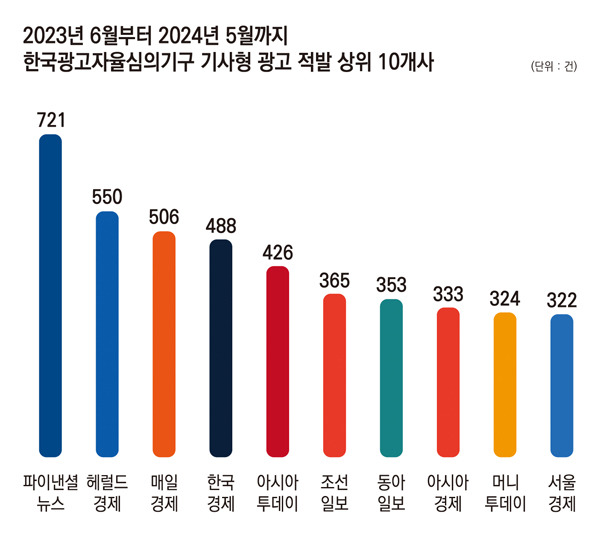 기사형 광고 심의 규정을 위반해 주의를 받은 경우는