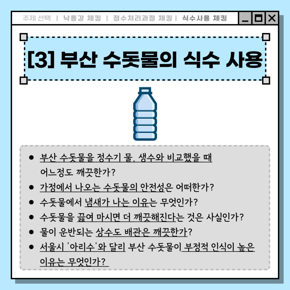 부산의 수돗물 현황을 낱낱이 파악하기 위해