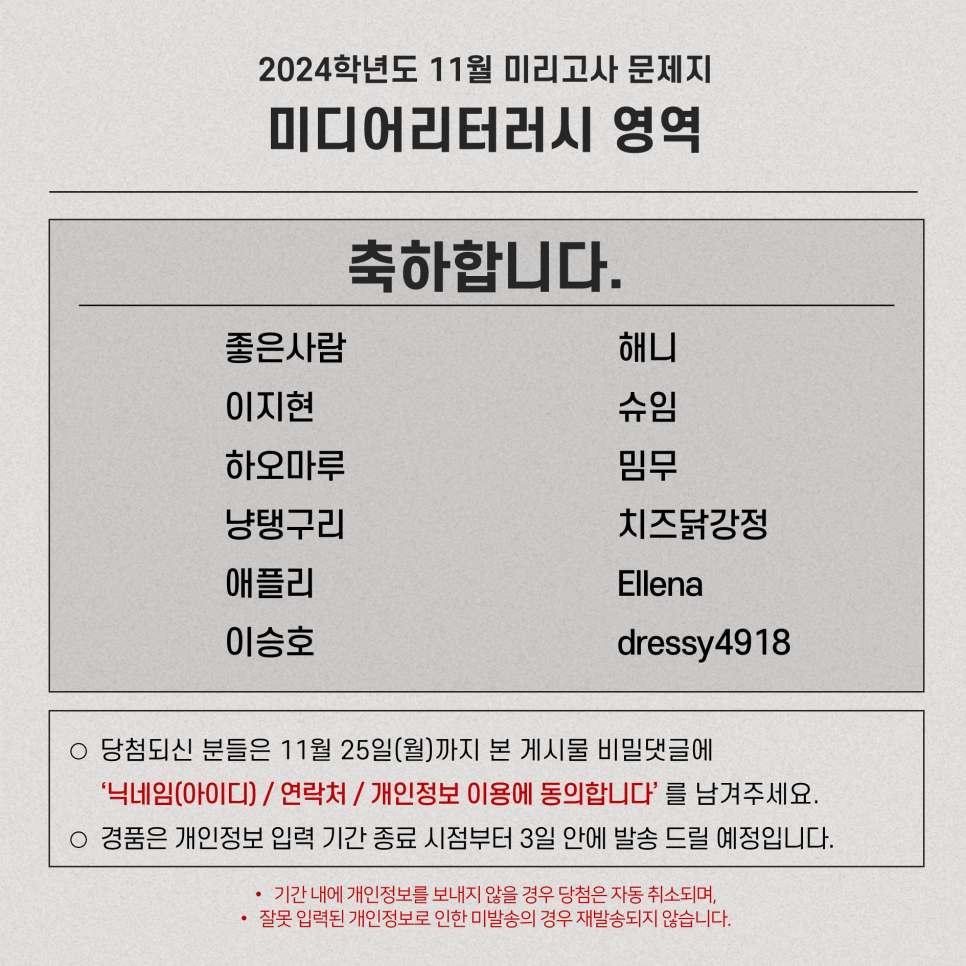 [미·리데이] 제1회 미리고사 이벤트 당첨자 발표