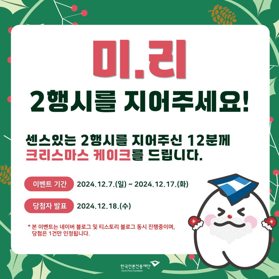 | [미·리데이] 미·리 2행시 당첨자 발표 (8) | 2024.12.17 |