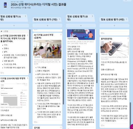 개인적으로 이 프로젝트에서 가장 중점을 두었던 활동은 AI 디지털 교과서를 주제로 한 기사 분석 프로젝트였다. 학생들은 AI 디지털 교과서와 관련된 긍정적 기사와 부정적 기사를 각각 분석하며, 서로 다른 관점을 비교했다. 기사 분석의 소재로 AI 디지털 교과서를 선택한 이유는 두 가지였다. 첫 번째 이유로는 내년부터 교육 현장에서 AI 디지털 교과서가 적용될 예정이라는 소식이 여러 번 보도되고 있지만, 정작 그 이용의 당사자인 학생들의 목소리는 어디에도 없었기 때문이고, 두 번째 이유로는 학생들조차 이 문제에 대해 큰 관심을 보이지 않았기 때문이다.