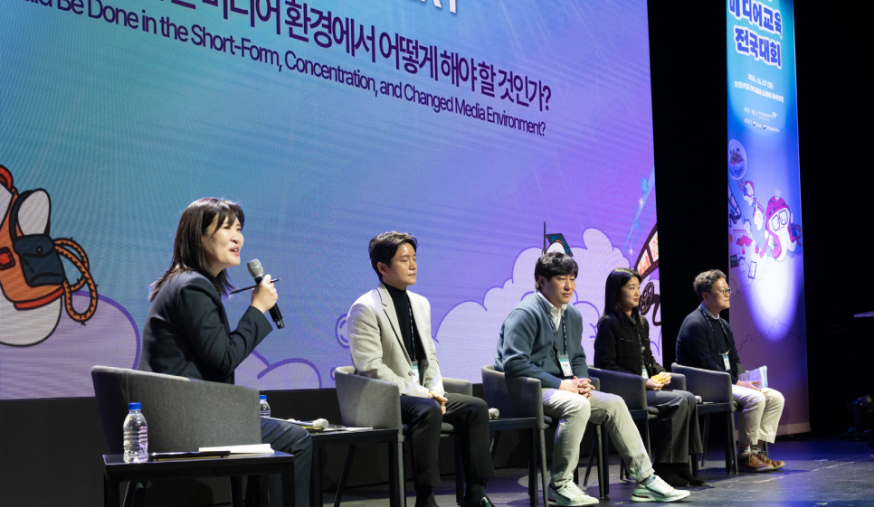 다음으로는 김아미 디지털 미디어 리터러시 독립 연구자의 진행 속에 10만 구독자를 보유한 유튜버 이현길 파주 파평초등학교 교사, 이성배 대구경북과학기술원 교수, 양진하 한국일보 숏폼 콘텐츠 ‘휙’ 팀 리드 기자, 류동근 틱톡코리아 상무가 연사로 참여한 토크콘서트가 이어졌다. 교육자, 언론인, 기업가 등 다양한 분야의 전문가가 한자리에 모여 숏폼에 대해 이야기를 나누는 상황 자체만으로도 흥미로웠다.