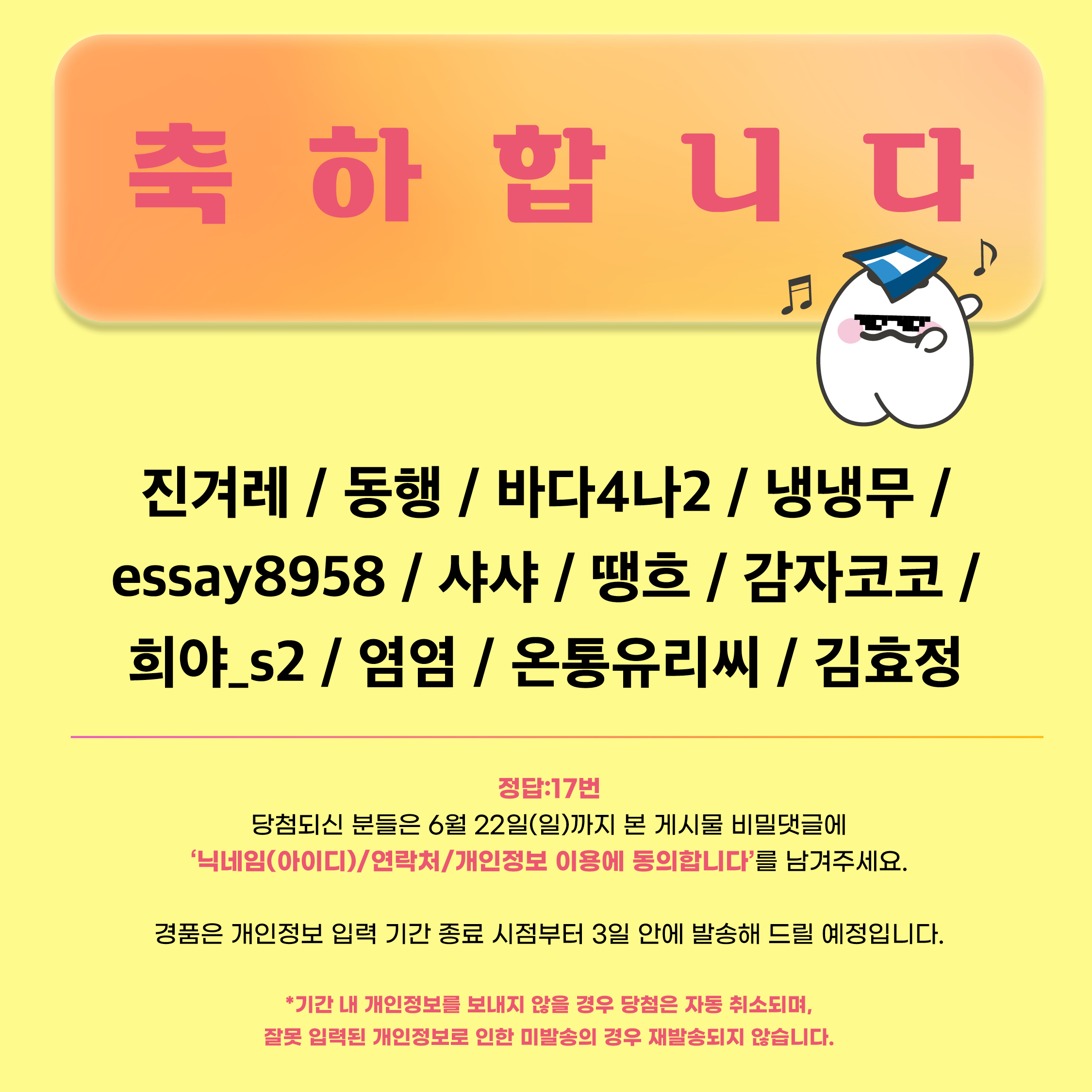 뜨거운 참여 덕분에 2명을 추가 선정해 총 12분께 경품을 지급합니다~!
