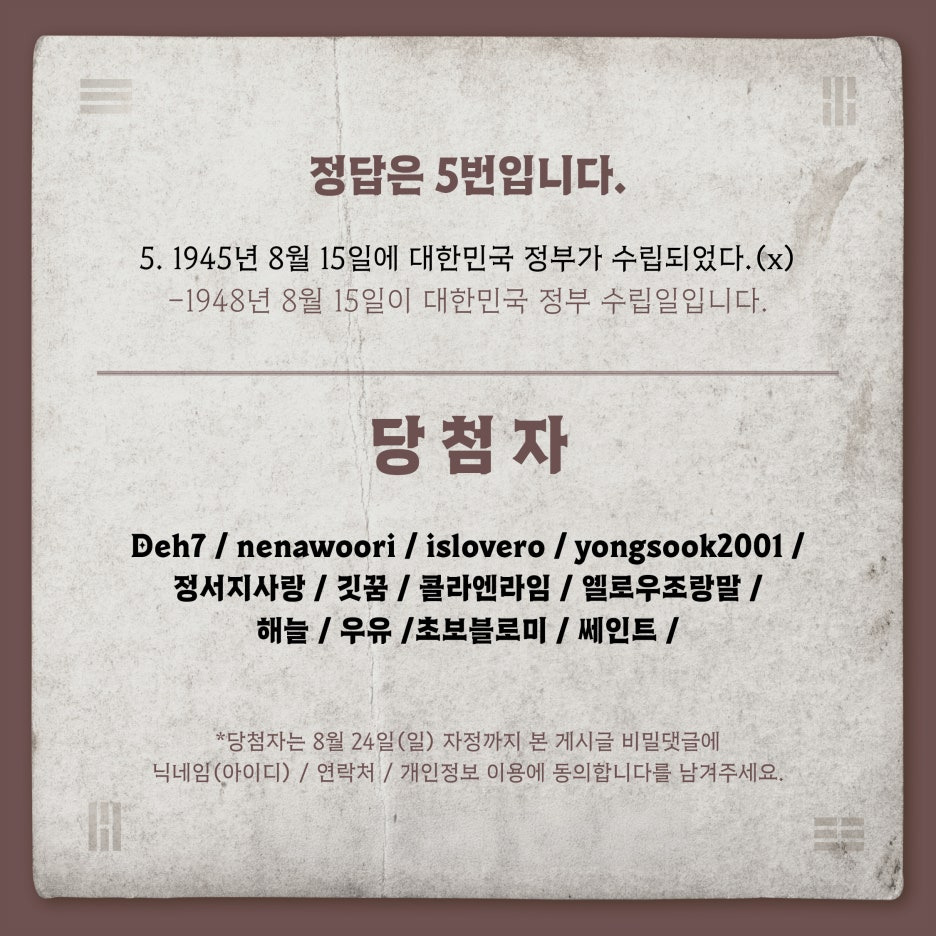 [미·리데이] 로니와 함께하는 8.15 역사 속 팩트체크 이벤트 당첨자 발표