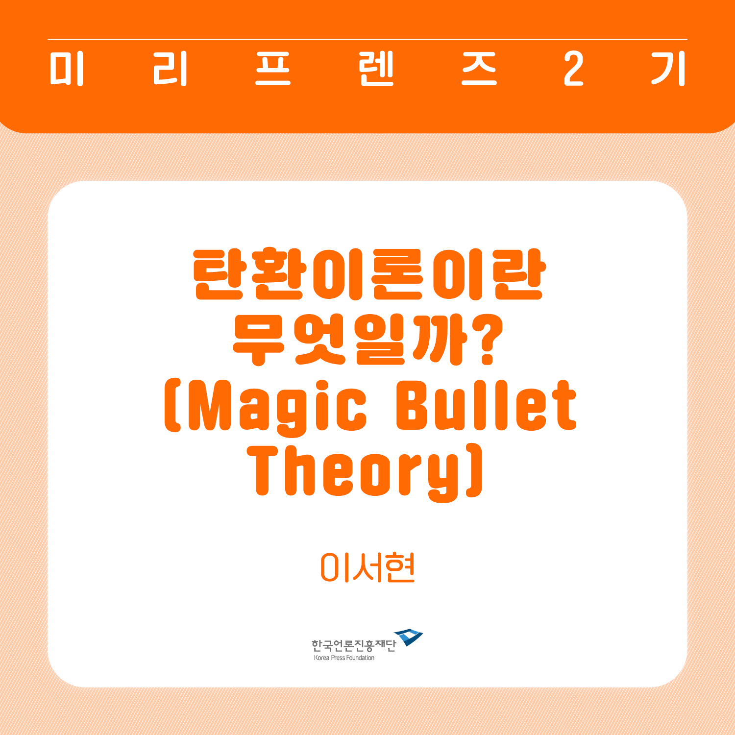 사실 탄환이론이라고 하면, 이름 때문인지