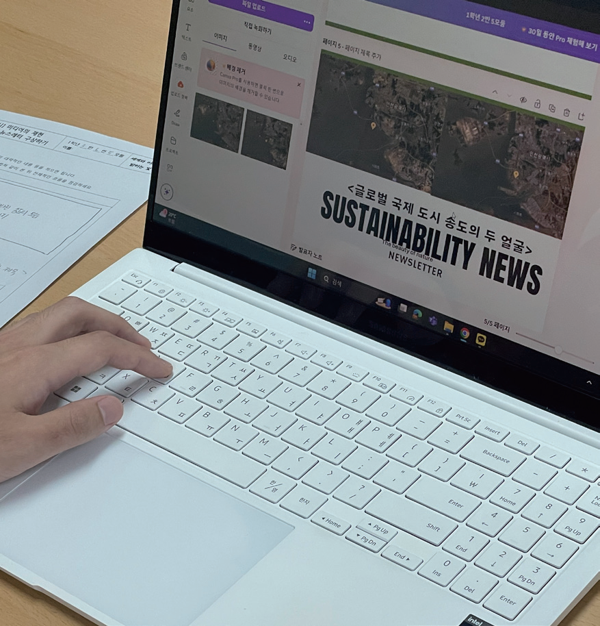 학생들이 재현한 우리 지역의 모습은 매우 다양했다. 실제 범죄율을 바탕으로 인천이 위험하지 않은 도시임을 증명하고, 실제 인천에 살아가는 인천 시민들의 일상과 인천의 자그마한 섬마을에 살아가는 주민들의 모습 등 학생들은 뉴스레터를 통해 인천의 다양한 모습을 담아냈다. 그중에서도 눈에 띈 것은 가람이가 속한 A 모둠의 결과물이었다.