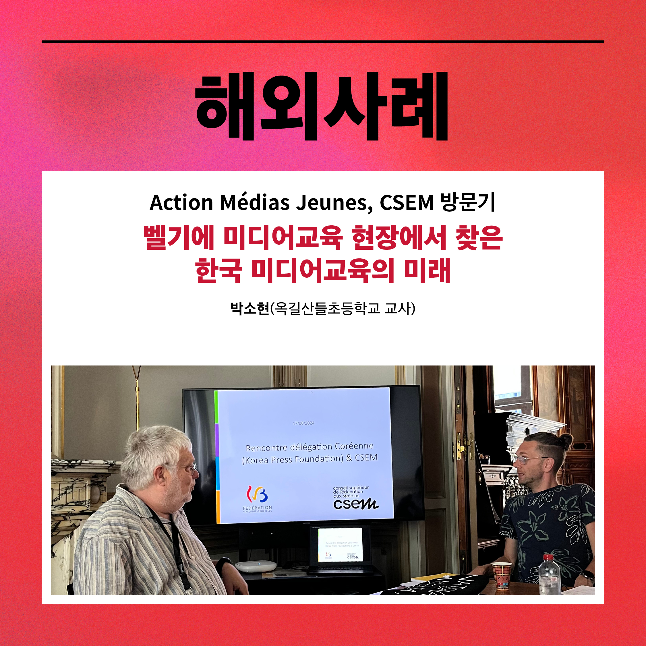 이번 연수에서는 현장에서 실질적인 미디어교육을 수행하고 있는 기관인 악시옹 메디아 존느(Action Médias Jeunes, 이하 AMJ)와 벨기에 미디어교육의 정책적 토대를 마련하고 지원하는 미디어교육최고위원회(Conseil Supérieur de l’Éducation aux Médias, 이하 CSEM)를 방문해 벨기에의 미디어교육이 어떻게 이뤄지고 있는지 심도 있게 살펴볼 수 있었다. 이 글에서는 이 두 기관을 탐방하며 새롭게 알게 된 점과 함께, 한국의 미디어교육 현장에 적용 가능한 시사점을 알아보고자 한다.