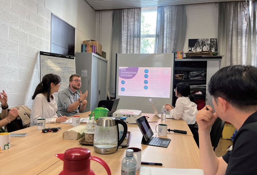 벨기에 해외 연수 2일 차, 첫 일정은 나무르에 위치한 악시옹 메디아 존느(AMJ) 방문이었다. 미디어교육 코디네이터 클레르 베를라주(Claire Berlage), 실무자 올리비에 포르츠(Olivier Fortz)가 함께 자리해 주요 프로그램을 소개했고, 서로 미디어교육 현황 등을 공유했다.