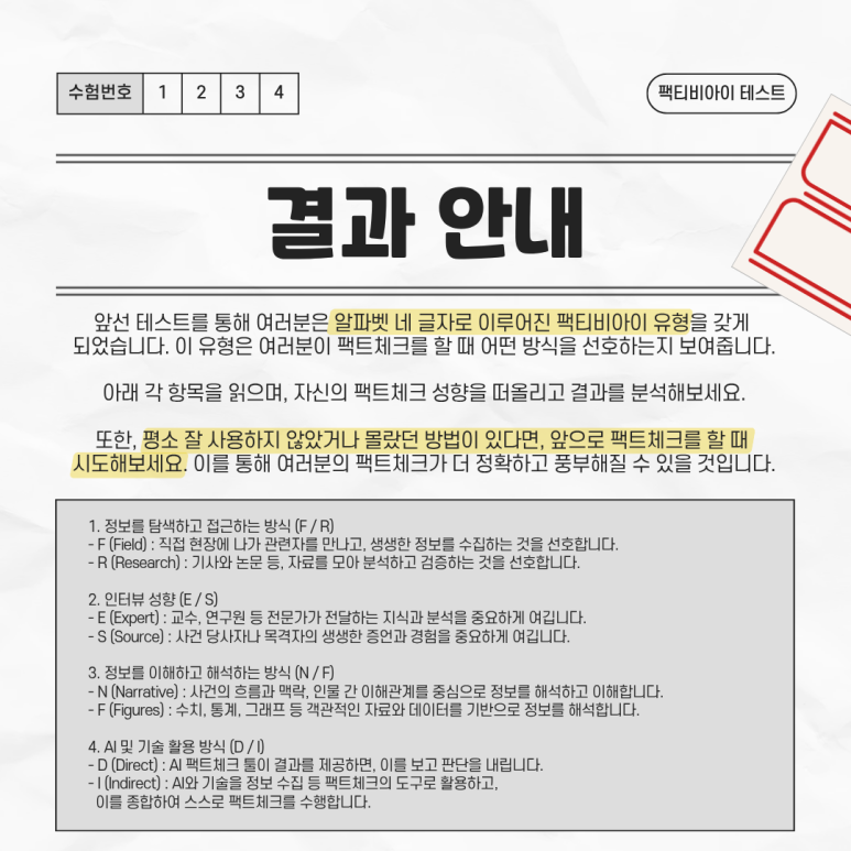 팩티비아이 테스트: 나의 팩트체크 유형은?
