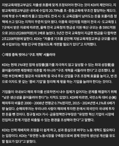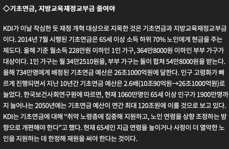 이후 내용에서 조선경제 기사는 기초연금, 지방교육재정교부금, 구조 개혁에 관한 이야기를 하는데요.