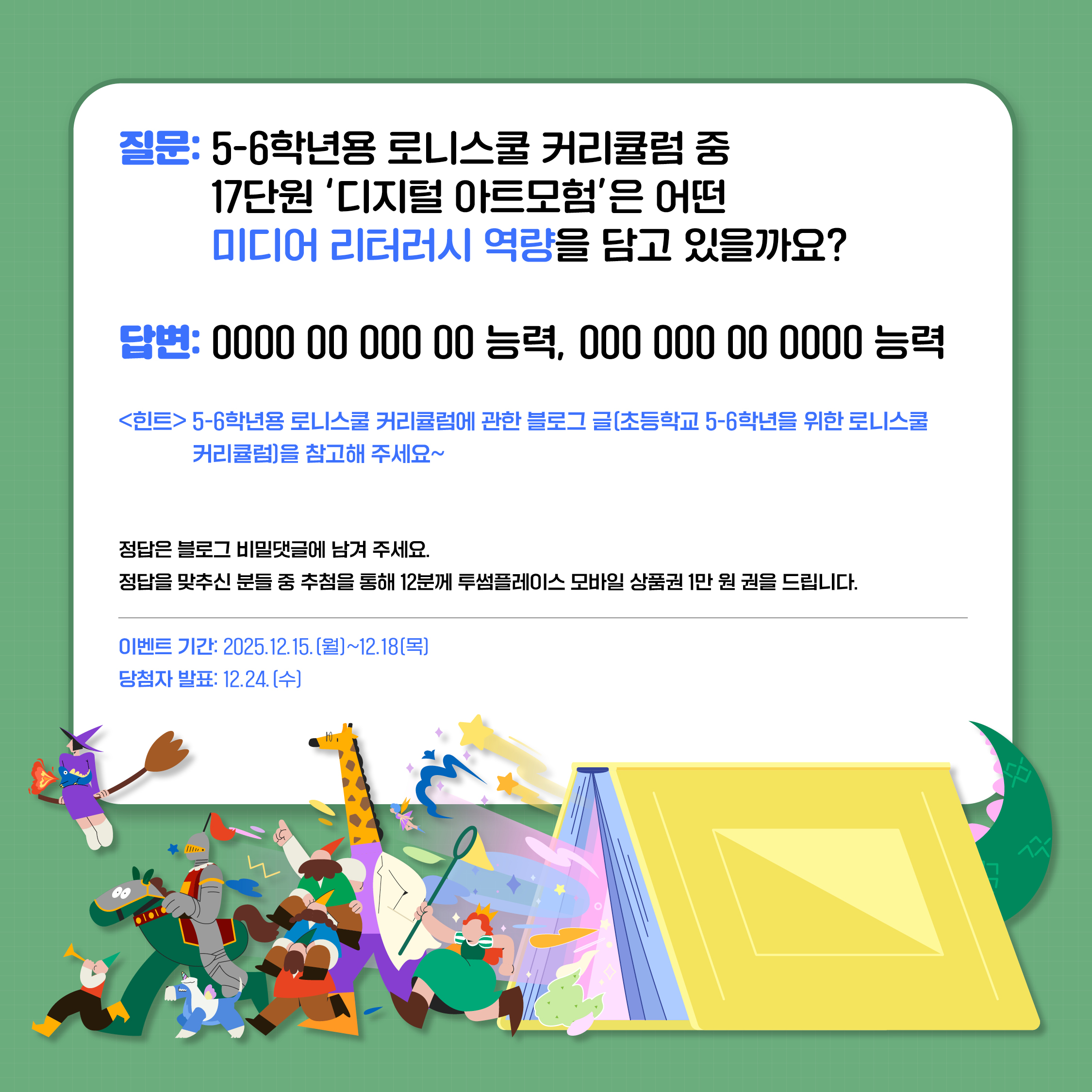 | 5-6학년용 로니스쿨 커리큘럼 홍보 이벤트 당첨자 발표 (2) | 2025.12.24 |