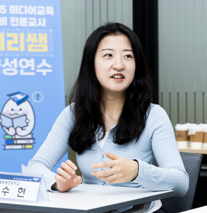 A. 정수현 미리쌤 연수 중 ‘똑똑 미디어 세상’ 교과서와 지도서를 제공받아서 교실 수업에 활용했다. 연수 후 학교에 돌아와서 직접 아이들에게 수업을 진행해보면서 두 번 공부가 되었다. 이런 자료를 제공받을 수 있다는 것과 수업 전체를 직접 구상해야 한다는 부담감 없이 커리큘럼에 따라 아이들과 즐겁게 이야기 나누며 수업할 수 있다는 것을 알게 됐다. 아이들도 비판적 사고력, 가짜뉴스의 위험성, AI 활용 부분을 수업할 때 흥미롭게 수업