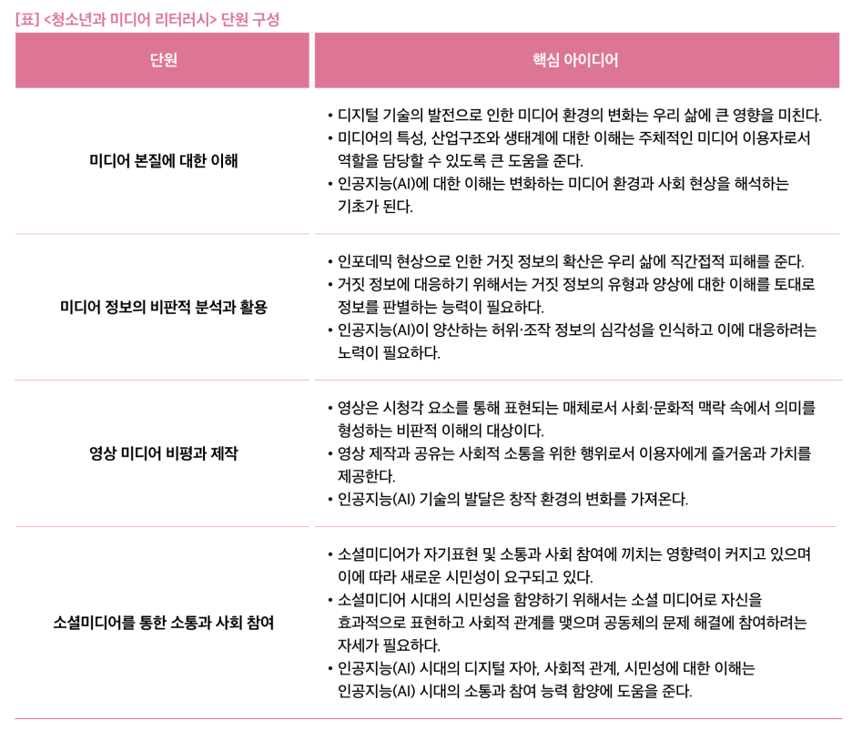 고등학교 ‘청소년과 미디어 리터러시’ 과목은