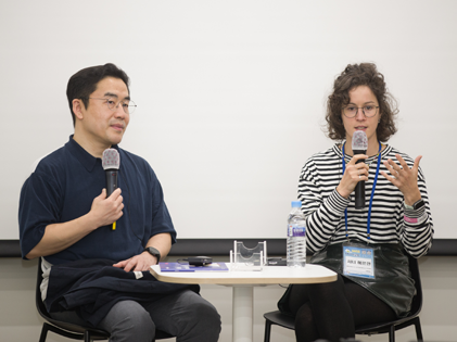 2일 차인 11월 8일에는 미디어교육원으로 자리를 옮겨 교급별 학교 현장의 미디어교육 실천 사례가 집중적으로 논의되었다. 초등 교급 세션은 박소현 옥길산들초등학교 교사와 프랑스 끌레미 소속 트레이너 자비에 질레(Xavier Gillet)의 발표를 듣고 미디어교육 학습 교구를 직접 체험해 볼 수 있었다. 글로벌 스탠다드와 국내의 미디어교육 현안을 함께 고민할 수 있었던 뜻깊은 시간이었다.