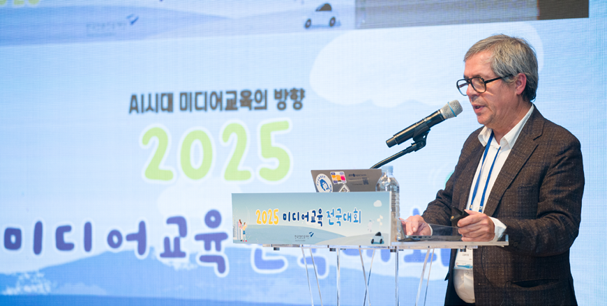 이러한 변화는 교육 현장에 가볍지 않은 과제를 안겼다. AI 시대에 미디어교육은 어디를 향해야 하는가. 초대받지 않은 손님 AI가 성큼 들어선 오늘날 초등학교 교실 풍경은 어떠한가. 교사들은 어떤 시선으로 AI를 바라보아야 할까. 현장 교사로서 나는 이 질문에 답하기 위해 한국언론진흥재단이 주최한 2025 미디어교육 전국대회(이하 전국대회)에 참석했다. ‘AI 시대 미디어교육 방향’을 주제로 국내외 연사들의 현장 사례 발표와 심층적인 논의가 이어진 이틀간의 열띤 현장을 들여다보자.